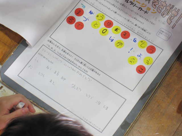 ・シールをたくさん集めて、なるべくたくさんの言葉を作ったり、文章を考えたりする。
