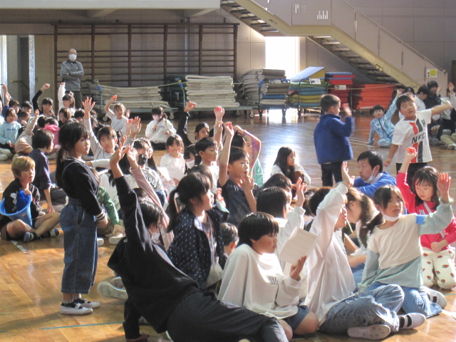 上級生の優しさやリーダシップ、その優しさに甘える下級生など、ほのぼのとした雰囲気の中で、全校児童の仲がさらに深まった集会でした。