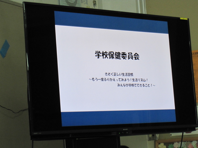 学校保健委員会が行われました。テーマは「規則正しい生活習慣について」です。リモートで行いました。今年度の保健委員会の子どもたちはスライド作りにも挑戦しました。スライドを見終わった後、各学年「自分たちが学校でできること」ということで話し合いました。写真は6年生と1年生の様子です。1年生の話し合いには、保健委員会の子どもたちが入って話し合いを進めていました。