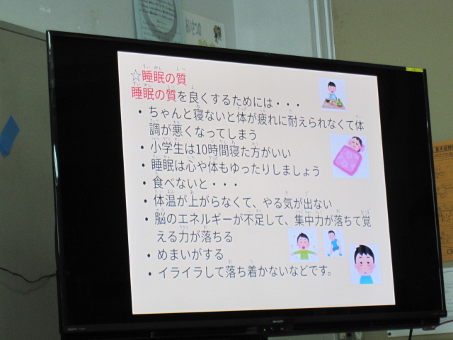 学校でたくさん頭を使って(勉強して)、思いっきり遊んで、たくさん給食を食べて、夜ぐっすり睡眠をとれるようにしましょうね。