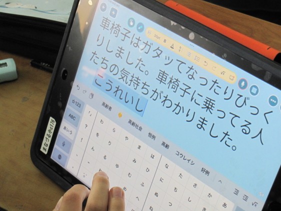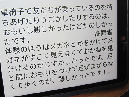社会福祉協議会の協力を得て、4年生が高齢者体験学習を行いました。振り返りにあるように楽しみながらも、しっかり学習できたようです。