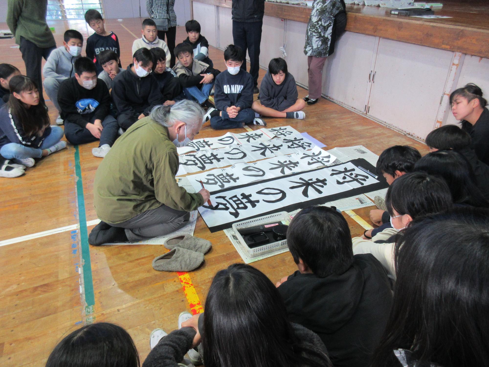 本校は書き初めの学習に、地域のボランティアの方々にお越しいただいています。今年は5名お越しいただきました。写真は今日の6年生の練習の様子です。書き方を丁寧に教わった後、みんな一生懸命練習に取り組みました。適宜ボランティアさんにアドバイスをいただきながら立派な字を書くことができていました。ボランティアさん、1月の本番もどうそよろしくお願いいたします。