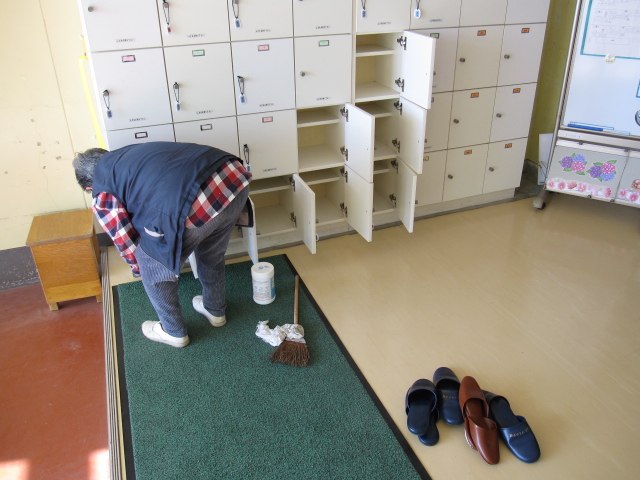 今日は、職員玄関のお客様用の下駄箱をきれいにしてくださっていました。用務員さんいつもありがとうございます。