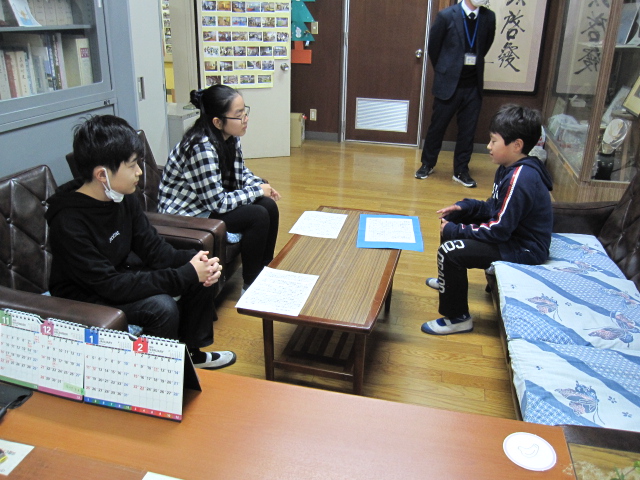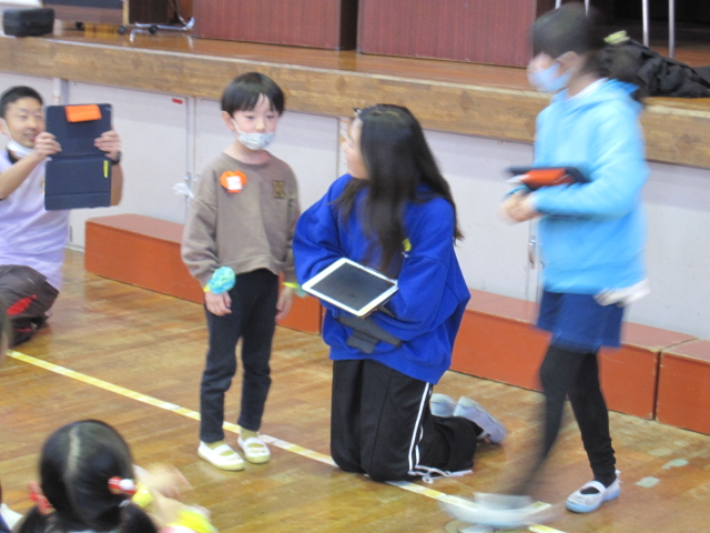 5年生が2回目の園児交流を行いました。写真のように園児と同じ視線に立っている5年生が素敵でした。また、感想交流では手を挙げる園児を名前を呼んで指名していたことに驚かされました。集団に入るのが苦手な園児もいたようですが、その子の担当になった5年生たちは、園児のペースを乱すことなく上手に接していました。5年生、立派な6年生になれそうですね。