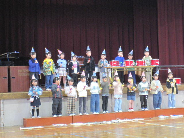 1年生は3曲合唱、合奏を披露しました。そのうちの1曲「ジングルベル」はハンドベルを使っての演奏でした。演奏が始まるとシーンと静かになり、全員ハンドベルのきれいな音色に聞き入ってしまいました。
