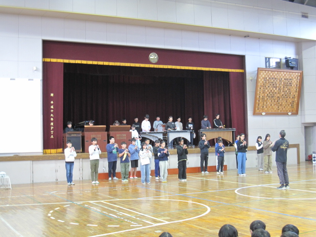 6年生は「翼を抱いて」の2部合唱と「オペラ座の怪人」の合奏を披露しました。2部合唱は、女子の高音と男子の低音がハーモニーを奏で、まるで中学生の合唱を聴いているようでした。これまたみんな聞き入ってしまいました。合奏は今年の「とり」に相応しい演奏でした。