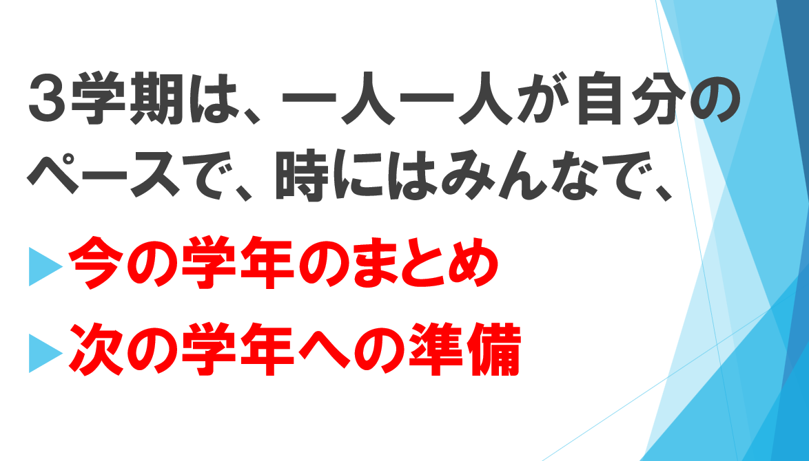 3学期始業式をオンラインで行いました。冬休み中は大きな事故等もなく、元気な子どもたちの顔を見ることができ、大変うれしく思いました。校長の話では、今年の干支である「うま」にちなんで、3学期は今の学年のまとめと次の学年への準備をしっかりしましょうという話と、3学期もあいさつをがんばり、笑顔あふれるまなづる小にしましょうという話をしました。あっという間の3学期ですが、令和7年度をしっかり締めくくりたいと思います。
