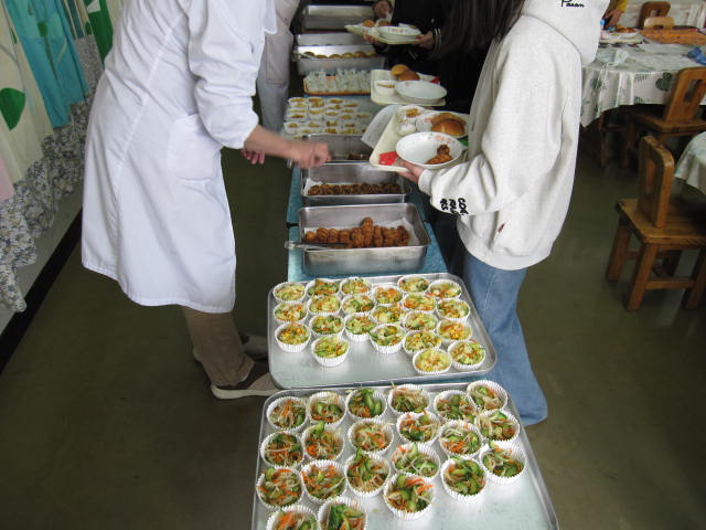 今日は6年生のバイキング給食がありました。写真のように、主食・おかず・デザートなどを自分で選ぶことができます。 「本当にありがたいです。」という6年生の言葉がとても印象的でした。 栄養教諭さん、調理員さん、ありがとうございました。
