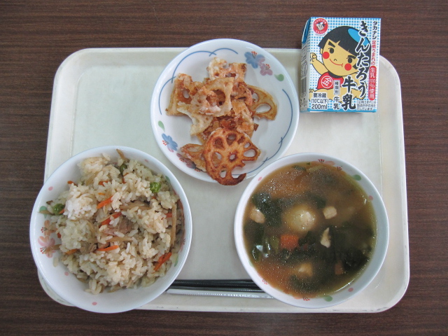 11月の給食 11月6日(木) セサミトースト ポークビーンズ ごぼうサラダ 牛乳 11月5日(水) 鶏めし 豆腐だんご汁 れんこんチップス 牛乳 11月4日(火) みそラーメン じゃがいものきんぴら 牛乳 更新日:2025年11月06日